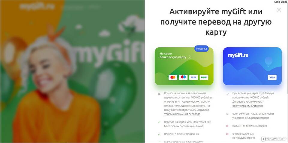 Способы активации карты MyGift