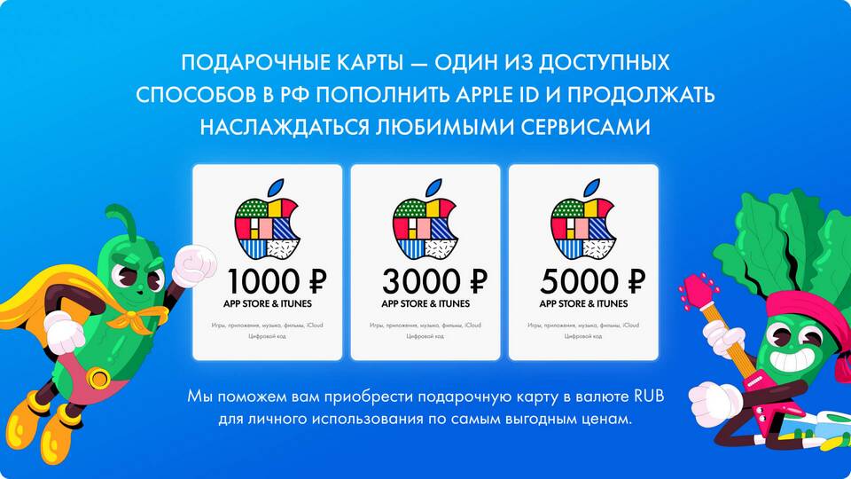Подарочные карты App Store нельзя использовать для покупки аппаратных продуктов Apple или аксессуаров в магазине Apple Store. Они предназначены исключительно для цифрового контента в экосистеме Apple.