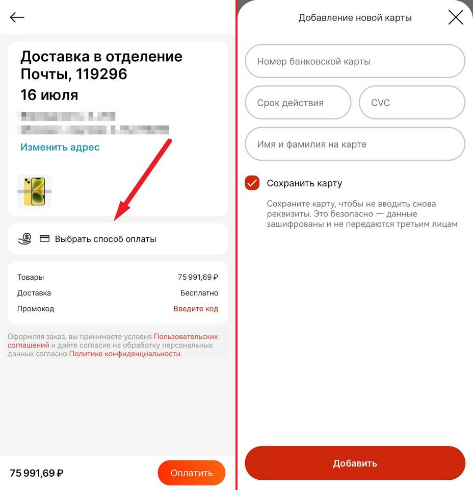 Выбор способа | Укажите предпочтительный метод оплаты |