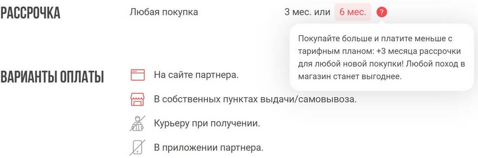 Срок рассрочки | 3, 6, 10 или 12 месяцев |