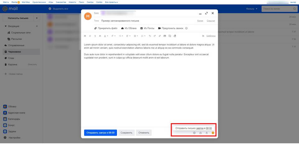 - Отправка письма с задержкой (функция "Отложенная отправка")