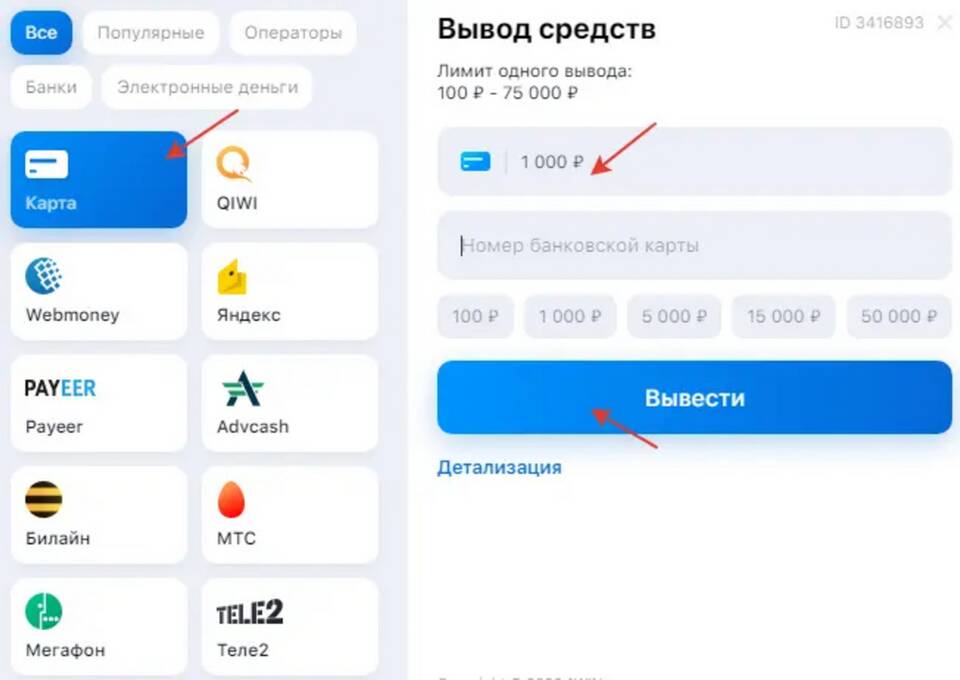 - Вывод возможен только на те реквизиты, с которых делался депозит